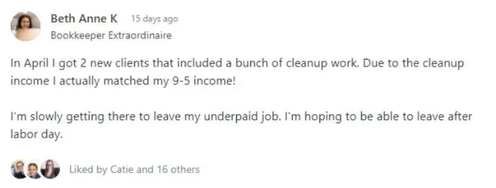 "I just want to send a note of appreciation to Kristin! I was just on the Office Hours call and I loved how encouraging she was. Having the opportunity to speak with her directly about our bookkeeping questions, and even screenshare, and get her input is really priceless.